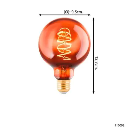 Eglo LED Globe E27 Filament Amber 4W 30lm - 820 Extra Warm White | Dimmable - Replaces 15W