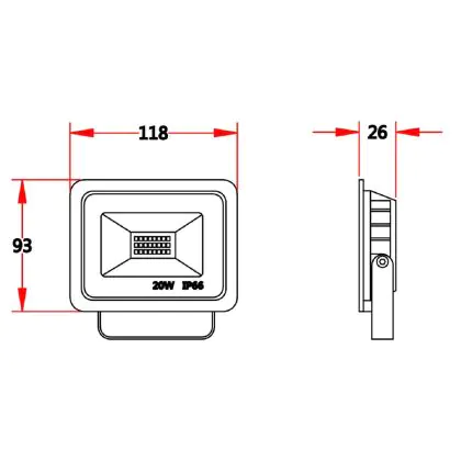 LED Floodlight 20W 2000lm 100D - 830 Warm White | IP66 - Symmetrical
