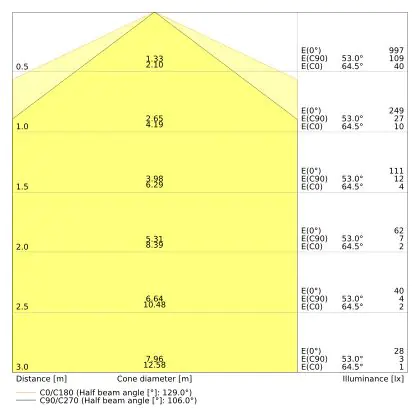 The colour code is a combination of colour rendering (CRI) and light colour (Kelvin). The first number indicates the colour rendering (1 = very poor colour rendering, 9 = maximum colour fastness). The second and third number contains the light colour. Example: the colour code 830 consists of good colour rendering (8) and warm white light (3000K). |