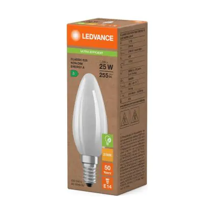 Ledvance LED Classic E14 Candle Filament Frosted 1.2W 255lm - 827 Extra Warm White | Replaces 25W