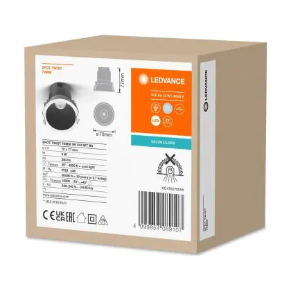 | Manufacturer Name | LED SPOT RECESS TWIST PRO 70mm 5W 4000K White Black | |