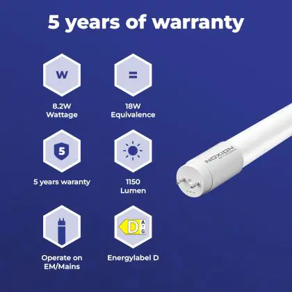 The most common lengths for T8 LED Tubes are 60cm, 90cm, 120cm and 150cm. For T5 LED Tubes this concerns 55cm, 85cm, 115cm and 145cm. Switching to LED? Then always check the length of your current fluorescent lighting. Do you want to know more? Then read our blog! |