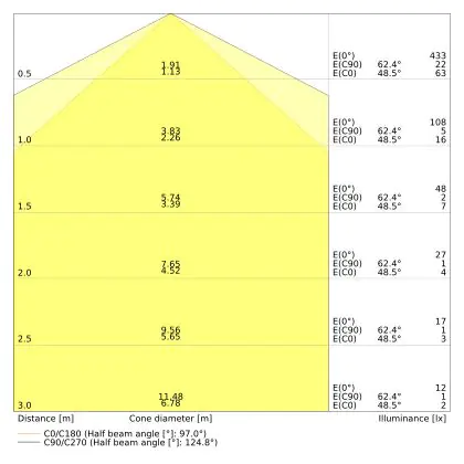 The colour code is a combination of colour rendering (CRI) and light colour (Kelvin). The first number indicates the colour rendering (1 = very poor colour rendering, 9 = maximum colour fastness). The second and third number contains the light colour. Example: the colour code 830 consists of good colour rendering (8) and warm white light (3000K). |