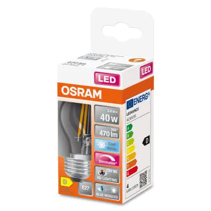 Osram LED Superstar E27 Ball Filament Clear 3.4W 470lm - 940 Cool White | Best Colour Rendering - Dimmable - Replaces 40W