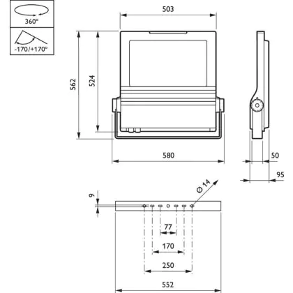 Philips LED Floodlight ClearFlood BVP650 Aluminium 250W 34400lm 83x130D - 740 Cool White | IP66 - Symmetrical